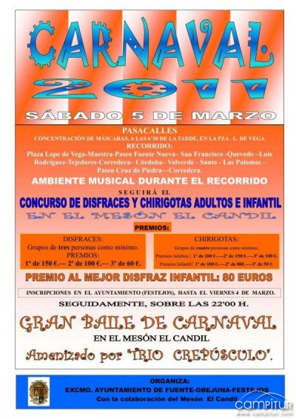 El Ayuntamiento de Fuente Obejuna, contando con la colaboración del Mesón El Candil, ha hecho público la programación que tiene prevista para la celebración de su Carnaval 2011.